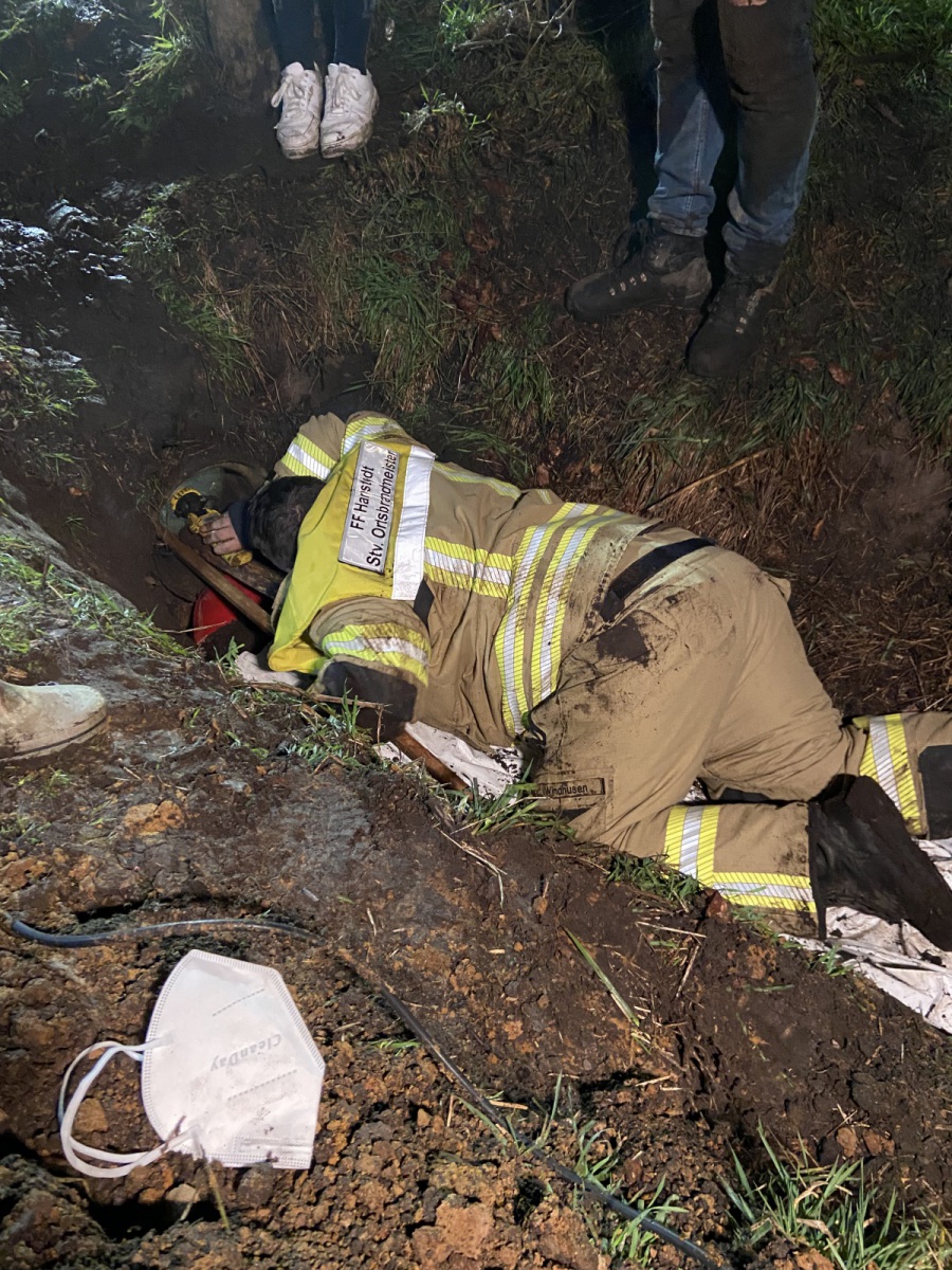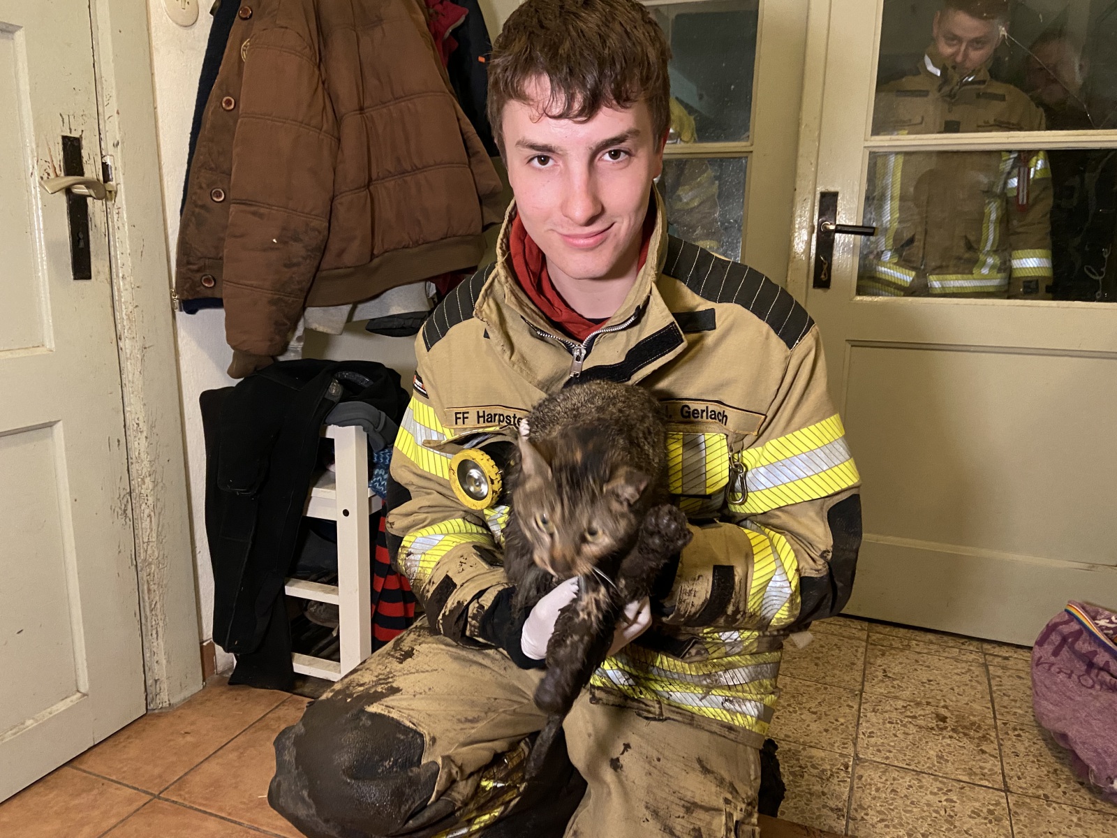 Einmal mehr hat es sich bestätigt, dass Katzen sieben Leben haben. Vor einer Woche berichteten wir über eine in einem Kanalrohr feststeckende Katze. Zu jener Zeit war das Tier lediglich in einer schlechten Position, um von alleine aus dem Rohr zu kommen. Die Freiwillige Feuerwehr Harpstedt drehte mit selbstgebauten Hilfsmitteln das Tier, sodass es nicht mehr verkeilt war. So hätte die Katze selbst den Rückweg antreten können. Nach sieben Tagen war dies jedoch nicht der Fall. Infolgedessen wurde die Freiwillige Feuerwehr Harpstedt am Montagabend erneut alarmiert und begann mit der Rettung. Nach einer Lagebesprechung der Führungskräfte, wie man an die im Rohr feststeckende Katze kommen könnte, wurde die gegenüberliegende Seite des Kanals gesucht und aufgegraben. Mit einem mit Wasser gefüllten Schlauch, um die nötige Formstabilität zu haben, wurde der Kanal von Erde befreit. Aufgrund der Tatsache, dass das Tier vier Meter im Rohr fest saß, mussten erneut selbstgebaute Hilfsmittel ran. Mit einer langen Holzlatte, Klebeband, Schrauben und einem Spaten konnte ein Erfolg erzielt werden. Nach gut drei Stunden konnte in Zusammenarbeit mit Anwohnern die Schaufel unter die Katze geschoben und diese schließlich langsam herausgezogen werden. Einer unserer Einsatzkräfte ist glücklicherweise Tierpfleger, sodass ein medizinisch geschultes Auge vorab einen Blick auf das Tier werfen konnte. Zur Freude aller: der Vierbeiner ist lediglich leicht Verletzt, dennoch sehr geschwächt. Über Nacht wurde die Katze beobachtet und betreut, um am nächsten Morgen einen Tierarzt aufsuchen zu können.