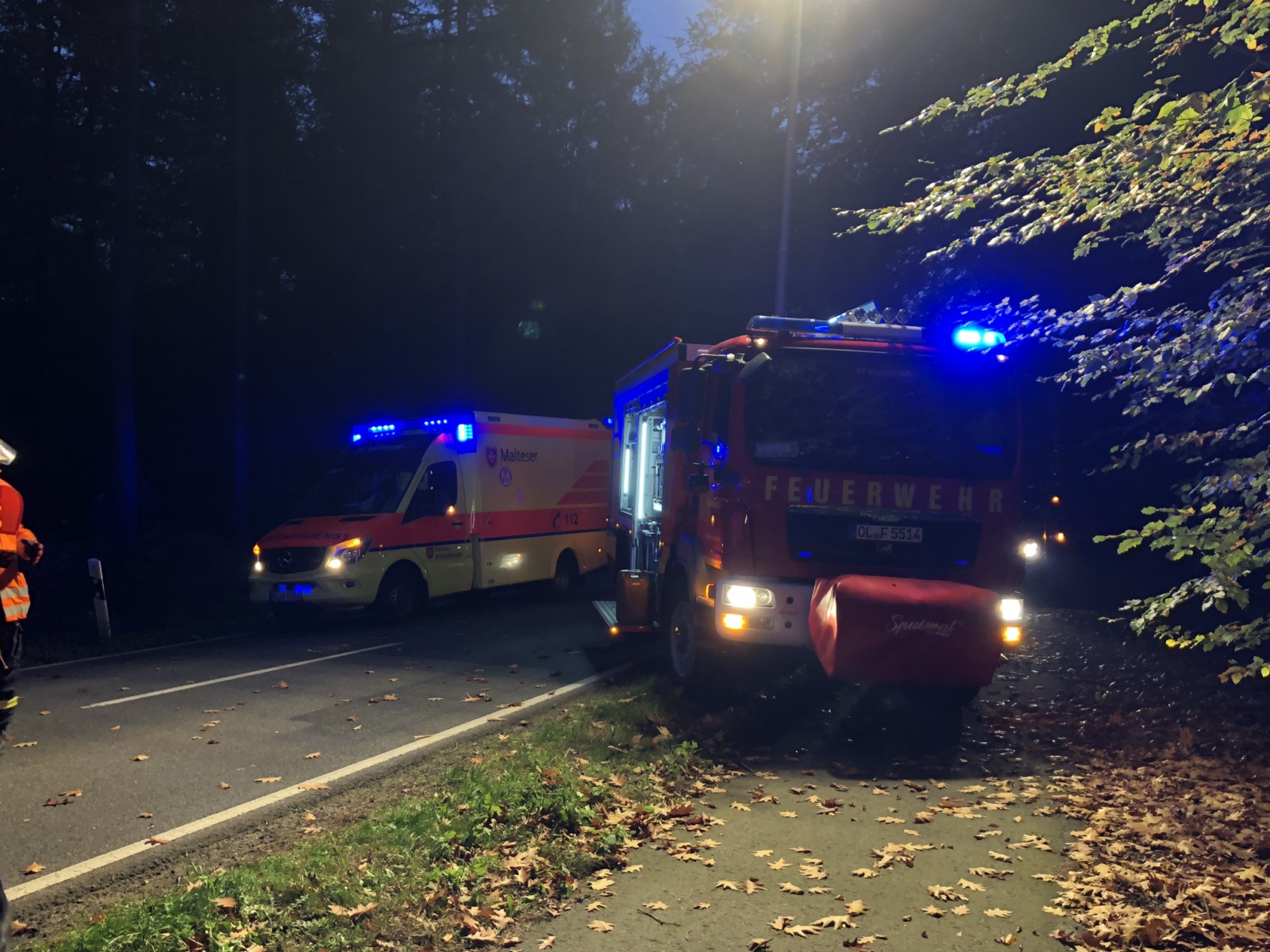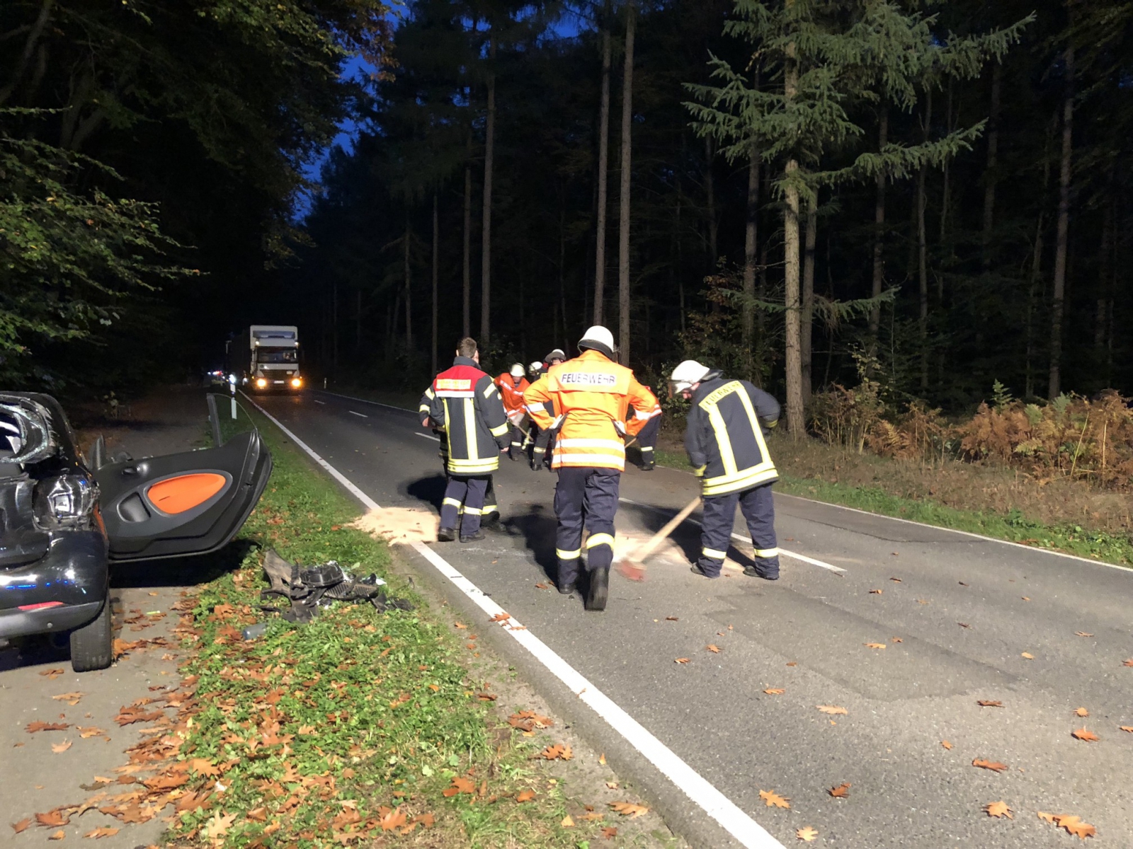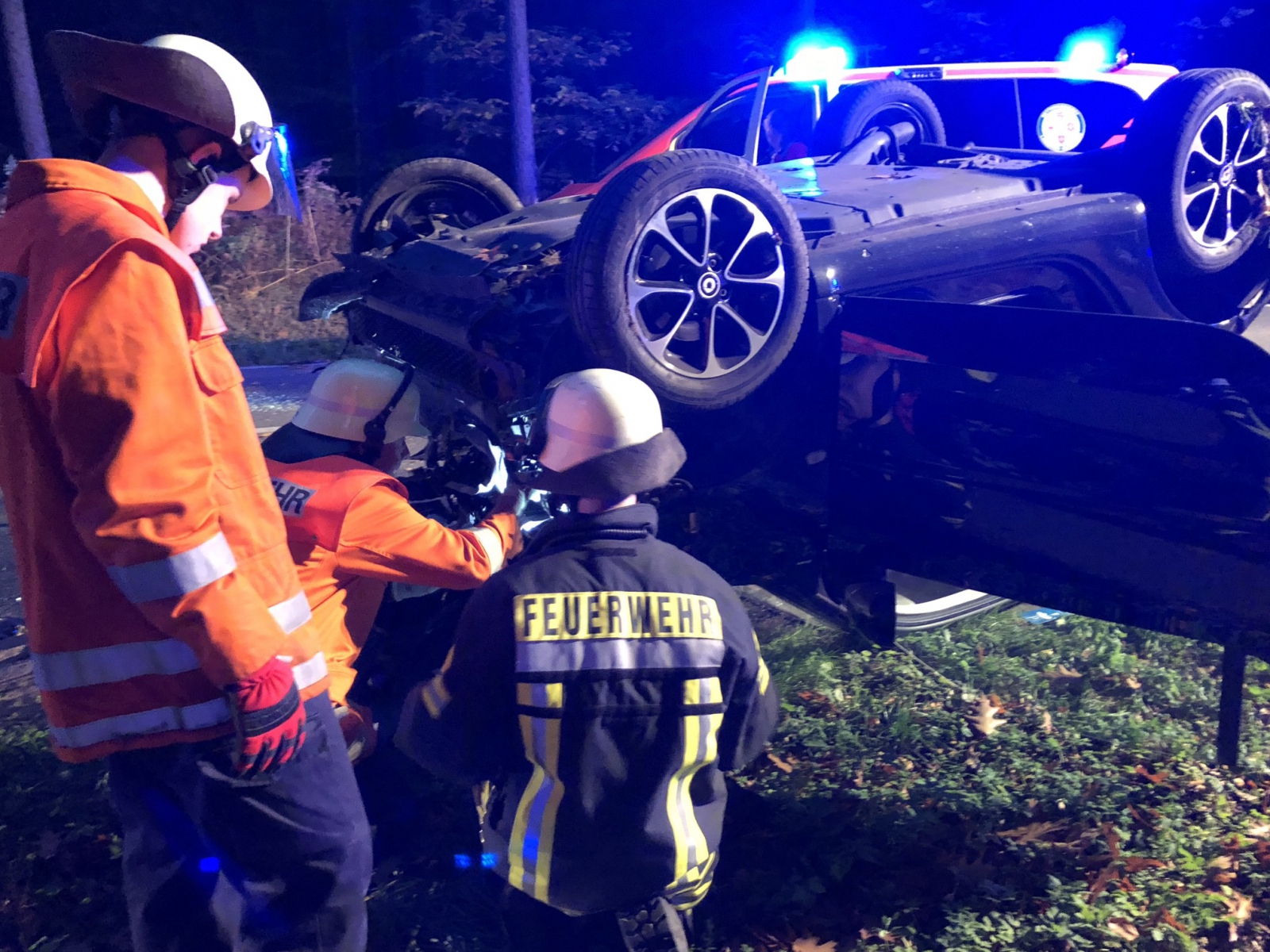 Von der Großleitstelle in Oldenburg wurde heute Abend die Feuerwehr Harpstedt zu einem Verkehrsunfall auf die Delmenhorster Landstraße alarmiert. In der ersten Meldung hieß es, dass ein PKW auf dem Dach liegt, eine Person eingeklemmt und bedingt ansprechbar ist. Noch während der Anfahrt kam die Rückmeldung vom ersteintreffenden Notarzt, dass die Person ansprechbar und nicht eingeklemmt sei. Bei Eintreffen der Einsatzkräfte ist die Person bereits aus dem Fahrzeug befreit worden. Somit brauche die Feuerwehr nicht mehr mit hydraulischem Rettungsgerät eingreifen. Sie streuten lediglich die auslaufenden Betriebsstoffe ab und trennten die Stromversorgung. Während der Unfallaufnahme wurde die Einsatzstelle zusätzlich noch ausgeleuchtet. Nach ca. einer Stunde war der Einsatz für die 22 Einsatzkräfte mit den fünf Fahrzeugen beendet.