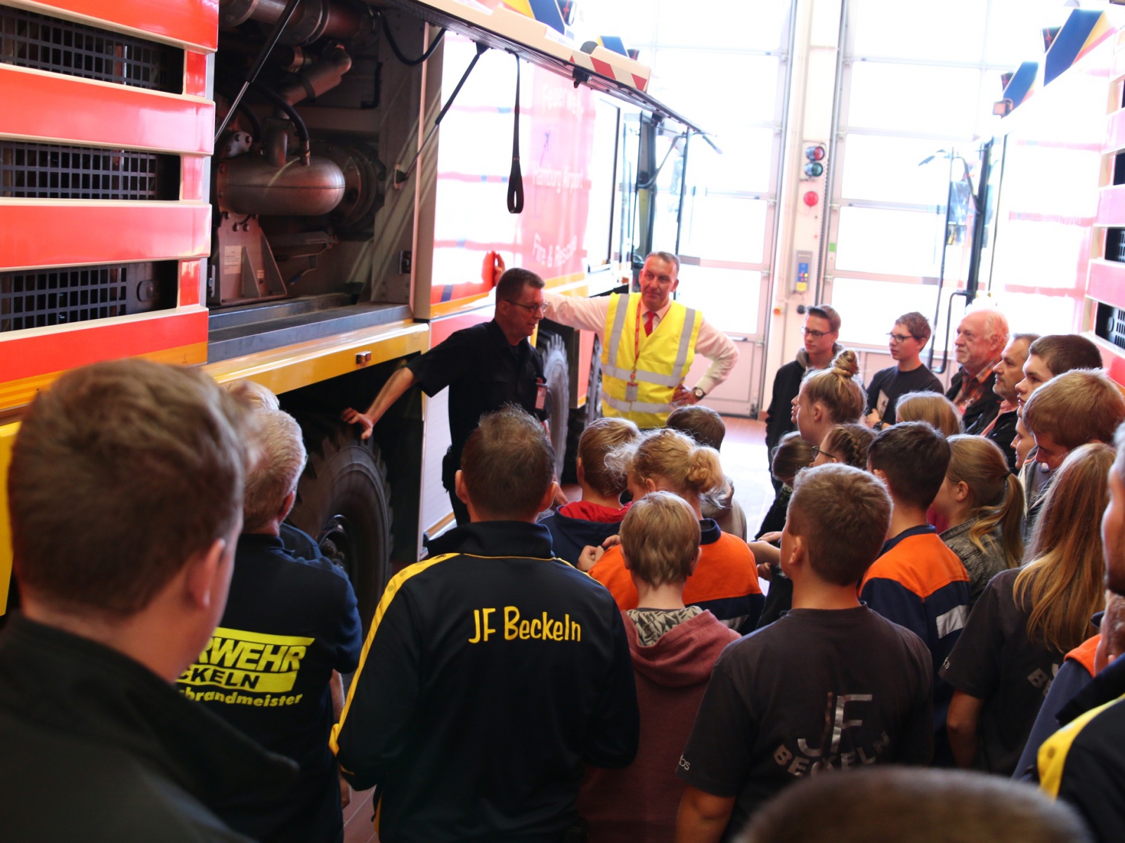 Einen spannenden Sonntag verlebte die Jugendfeuerwehr Beckeln. Der alljährliche gemeinschaftliche Ausflug ging in diesem Jahr für die 28-köpfige Gruppe zum Flughafen nach Hamburg. Früh morgens startete die Gruppe mit vier Mannschaftstransportwagen über die A1 Richtung Hamburg. Nachdem die Gruppe problemlos durch den Elbtunnel gelangte, kam sie schon am Flughafen an. Empfangen wurde die Gruppe beim Besucherdienst des Hamburger Flughafen. Neben der Beckelner Jugendfeuerwehr war noch eine Gruppe einer Hamburger Jugendfeuerwehr vor Ort. Zu Beginn der Führung ging es in einen Modellraum, in dem kurz über die Geschichte des Flughafens informiert wurde. Anhand eines großen Modells wurde der Flughafen und deren Gebäude vorgestellt. Nachdem die Einführung vorüber war, ging es mit einem Bus über das Rollfeld an den Terminals sowie den verschiedenen Hangars und den Flugzeugen vorbei. Auf der Hälfte der Startbahn hielt der Bus an, um so die startenden Flugzeuge zu bestaunen. Anschließend ging es zu der Wache der Flughafenfeuerwehr. Mit begeisterten Blicken schauten die Nachwuchsbrandschützer die großen Flugfeldlöschfahrzeuge an. Nach einer Führung durch die Wache führte die Tour zurück zum Ausgangspunkt. Bevor die Gruppe das Feuerwehrhaus in Beckeln wieder einfuhr, wurde bei bestem Herbstwetter gemeinsam ein Eis gegessen.