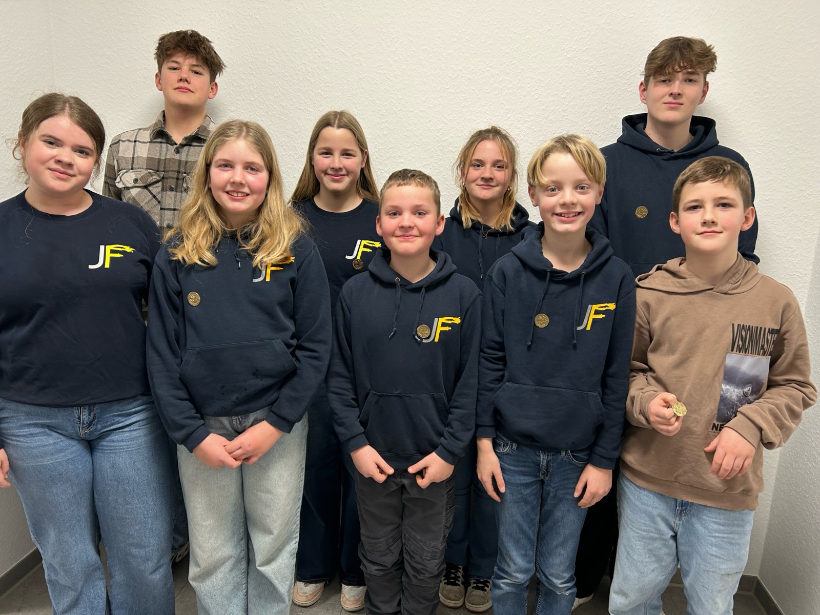 Zum Abschluss überreichte der stellvertretende Gemeindejugendfeuerwehrwart Jannis Kirchhoff das Abzeichen in Bronze für die Teilnahme am Bundeswettbewerb, womit das Engagement der Jugendfeuerwehr noch einmal besonders gewürdigt wurde.