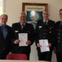 Zur offiziellen Ernennung als Ortsbrandmeister und stellvertretender Ortsbrandmeister trafen sich am Montagabend mehrere Vertreter aus Feuerwehr und Verwaltung im Amtshof in Harpstedt. Anwesend waren die Ortsbrandmeister der Feuerwehr Prinzhöfte, Jürgen Buchholz und Jens Bultmeyer, die Gemeindebrandmeister Nico Sparkuhl und Frank Bollhorst, Samtgemeindebürgermeister Yves Nagel sowie Ordnungsamtsleiterin Bettina Ruhland und Mitarbeiterin Nadine Beuke.